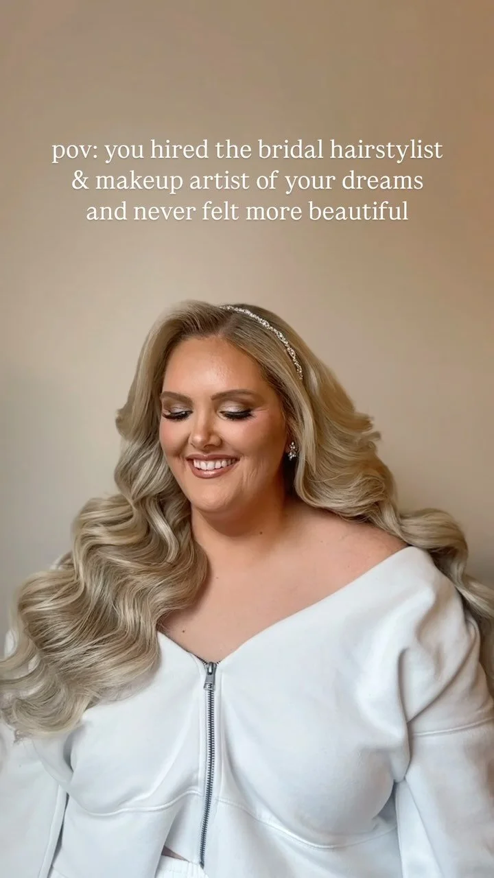 From my hair trial to the final wedding look, she was nothing short of professional and incredibly talented. She took the time to truly understand the vision I had for my wedding hair and made it come to life in a way I never even imagined possible. Her attention to detail and the quality of her work were exceptional—my hair looked absolutely stunning and stayed perfect throughout the entire day.”